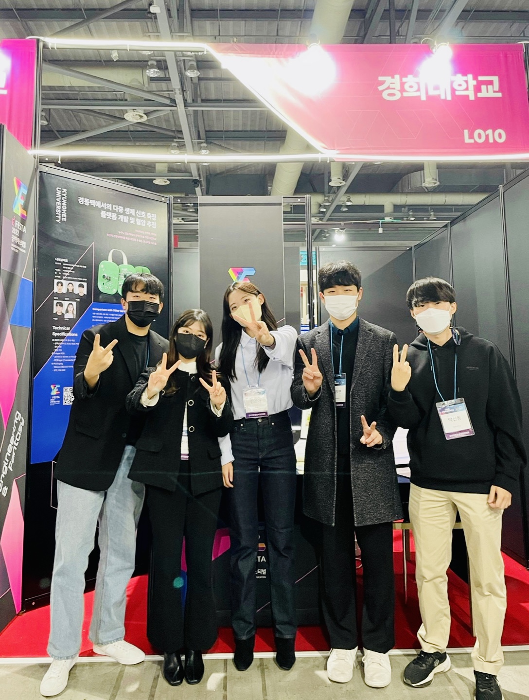 이상민교수님 연구실의 학부연구생 나의공이조 팀이 산업통상자원부가 주최하고 한국산업기술진흥원과 공학교육혁신협의회가 주관하는 '2022 공학페스티벌' 창의적 종합설계 경진대회에 출전하였습니다. 18학번 김도연, 여창현, 박선동, 19학번 전지연, 20학번 김민아 학우가 교내 경진대회 결과를 바탕으로 학교 대표로 선발되었습니다. nRF기반의 다중생체신호측정 시스템을 구성하고, BLE통신으로 받은 데이터를 matlab으로 가공 후 혈압 및 건강데이터를 사용자에게 제공하는 초소형 디바이스를 개발하였고, 공학페스티벌에서의 부스 운영을 통해 공학페스티벌을 찾은 많은 참가자에게 연구실의 기술을 홍보하고 인정받는 기회가 되었습니다. 지난 9월의 교내 최우수상에 이어 공학페스티벌 창의적 종합설계 경진대회에서 성균관대 컨소시움 동상을 거머쥐었으며, 이어지는 산학협력 경진대회에서는 어플리케이션 개발, 혈압 및 심박수데이터 정확도 검증 및 향상을 진행하며 금상을 수상하였습니다. 연구내용을 점차 발전시키며 좋은 성과를 거두고 있는 만큼 앞으로도 학과에서의 학업 및 연구에 열심히 참여할 수 있기를 바랍니다.